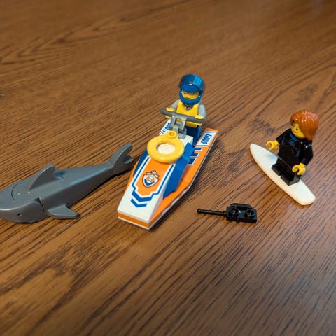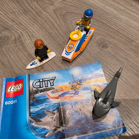 Alle klodser er der, og er pakket overskueligt i mindre poser. Det ene klistermærke er slidt i kanten. Derfor den lave pris.
