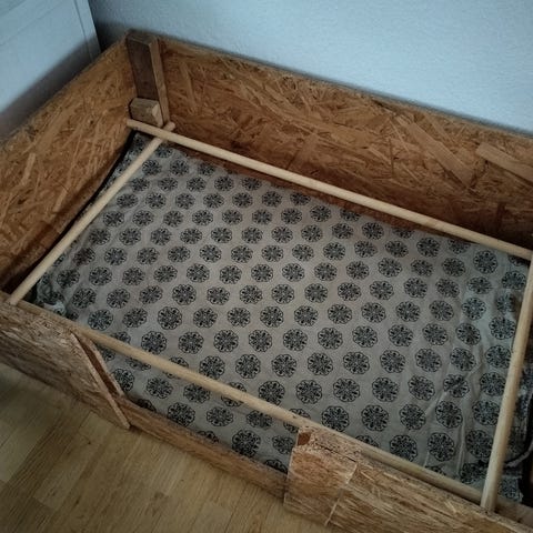 Stor føde kasse til lille eller mellem stor hund god plads. Brugt til mellem puddel