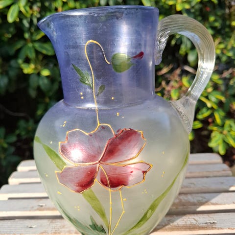 Stor rummelig glaskande, 25 cm høj, 13 cm i dia. Rummer 1 1/2liter.