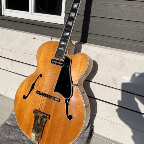 Gibson Johnny Smith Fra år 1973 står i god stand-det eneste er reparation af en tør revne - Nye bånd - bygget af top kvalitets materialer- carved gran top og ahorn bund - flammet ahorn hals med ibenholt gribebredt. humbucker mic. top klasse guitar med den fineste Jazz tone Wahuu!!!!