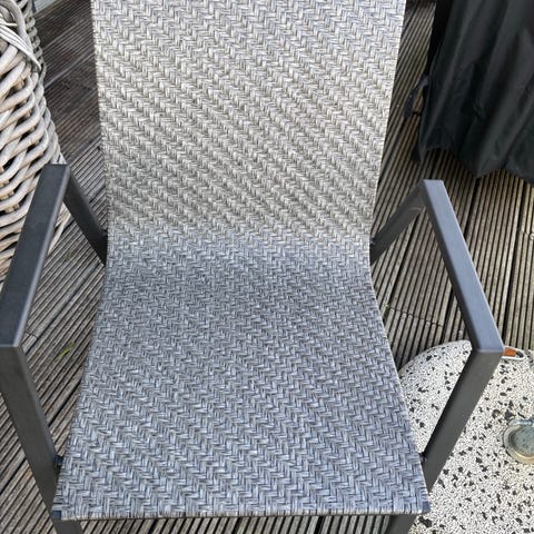 De kan vippe tilbage, men knapfunktionen virker ikke længere. De tre af stolene kan man vippe ryggen tilbage på når man lægger vægt på. Den fjerde stol kan ikke vippe tilbage. Men ellers er de fine at sidde i