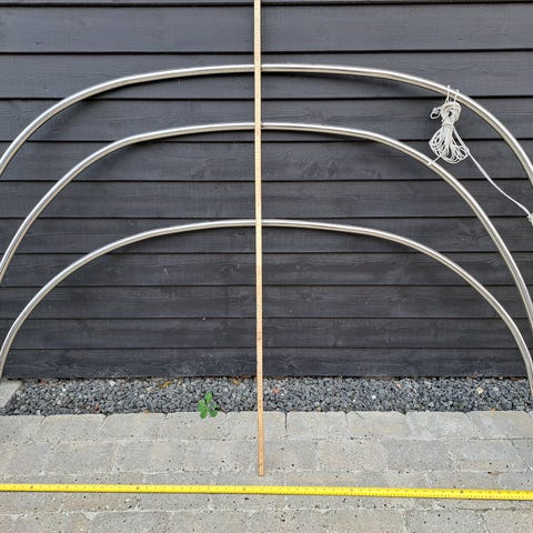 pressening med rør, tyk kvalitet, 2 år gammel, som ny, 4 * 4 meter med plastik rør der passer ned over septre, har siddet på 40 fods sejlbåd. Passer til alle sejlbåde 35-45 fod