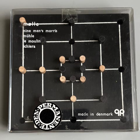 Træ Mølle Spil er et klassisk brætspil lavet af naturfarvet træ. Spillet inkluderer et bræt med en indgraveret mønster og spillebrikker i to farver. Perfekt til strategiske spil og underholdning for alle aldre.