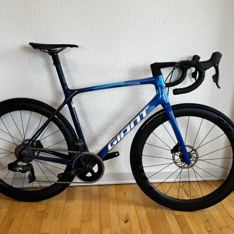 Hej jeg har denne fine Giant TCR Carbon ramme liggende, den er i super fin stand, størrelsen er cc overrør 54 og ct 52 slope svare til en 55, en smuk ældre pro ramme, i super stand.