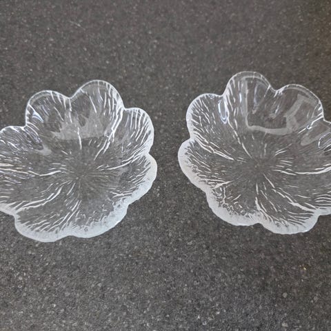 2 Koral glasskåle fra Holmegaard Glasværk. Design Sidse Werner 1982. Dia 20,5 cm. Flot stand.