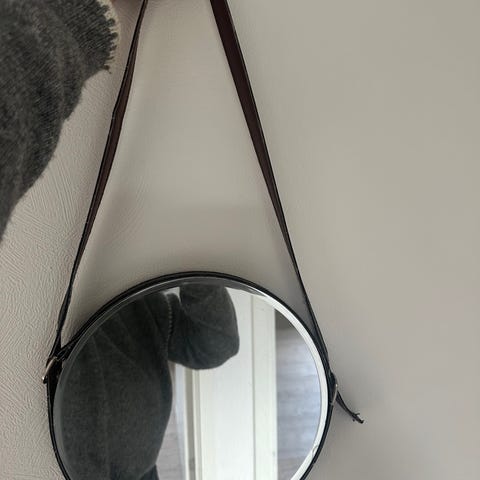 Spejl rundt med læderrem