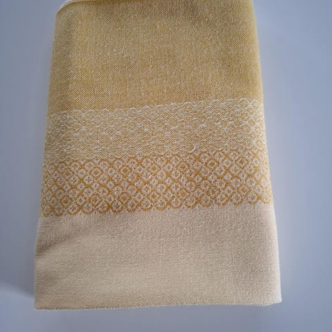 Flot dug gul med sommer motiv, oliven, solsikker, korn. Solgul.