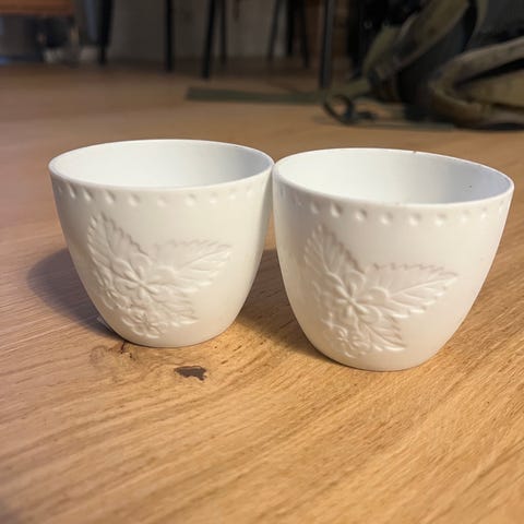 2 fyrfads lysestager, 2 fyrfads lysestager. De er sølv/grå, og sådan perlemor agtige. Fin stand.