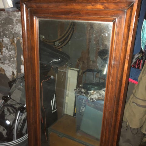 Gulvspejl, b: 80 h: 204, Antik fyldningsdør med spejle isat. Mega fin både til brug og dekoration - med den helt rette patina. Sælges kun grundet pladsmangel. Kan ses og afhentes nær Rønde på Djursland.