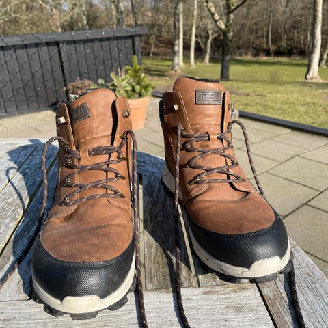 Støvlerne i pæn stand og jeg mener der er flere km i hjulene. Tre-fire sæt lejer trænger til udskiftning (larmer når der drejes på hjulet) og deraf prisen.