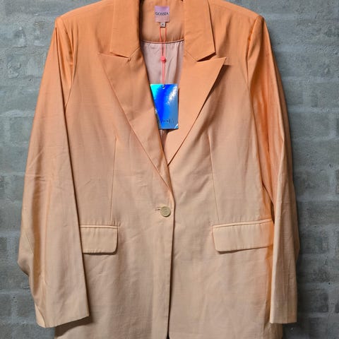 En skøn dobbeltradet blazer med elegante frynse detaljer og klassiske paspel lommer. Den unikke kombination af det formelle snit og de legende detaljer skaber et moderne, feminint udtryk.