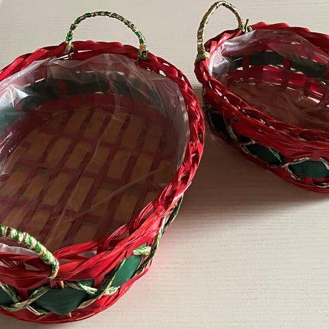 3 søde royal copenhagen julekurve, Kræmmerhuse Ca. 16 cm høj . Der er 3 dele en kurv , hjerte og Kræmmerhus . Guld med blå og hvid . De er I fin stand.