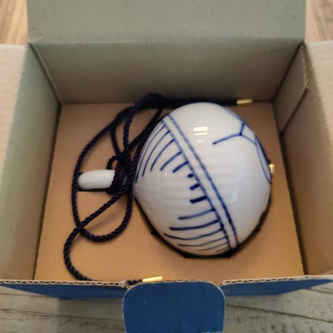 Royal Copenhagen musselmalet halvblonde julekugle, Royal Copenhagen musselmalet halvblonde julekugle søges.