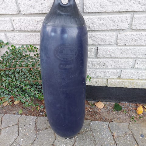 Fender kugle og cylinder. Kugle er fra Polyform og måler diameter 43 cm, højde 55 cm. Cylinder er fra Polyform HTM-2, diameter 22 cm, højde 55 cm. Meget pæne ! 175,- stykket.