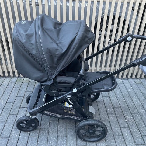 Nyistandsat barnevogn + klapvogn fra EmmaJunga, model super Nitro med drejbar forhjul, som kan låses.