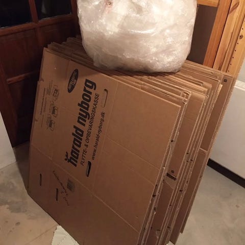 omkring 50 flyttekasser+ 4 kasser tæpper