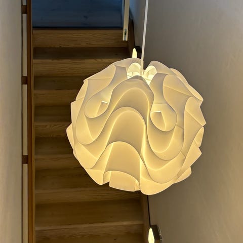 Designed by Poul Christiansen, this is a classic Danish design with a sculptural, hand-folded shade that gives off a soft, ambient light.