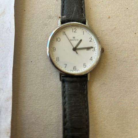 Nydeligt herreur, som er automatisk så du ikke skal skifte batteri, selvoptrækkende ved bevægelse. Remmen er lidt slidt, derfor den billige pris