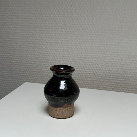 Lille enkel vase i stentøj. Hvid/ beige / varm grå glasur.