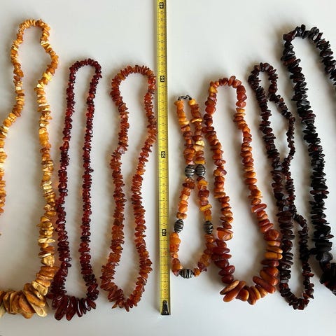 Rav halskæde 3 stk, den længste er polerede små ravsmykker, de 2 andre er rå rav stykker.
