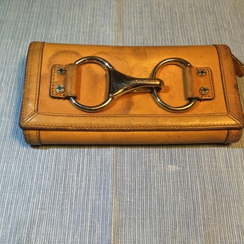 Pung, Karen Millen, naturel lak læder, XX-stor pung, passer godt til min taske KM her til salg