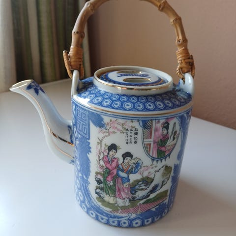 Vintage Orientalsk kinesisk tekande med flot mønster og bambusgreb. Telqnden er i porcelæn.