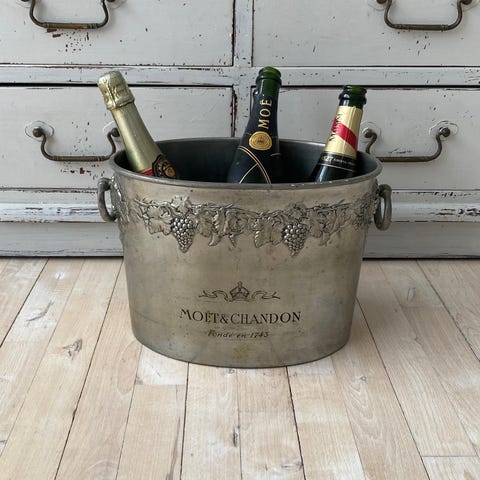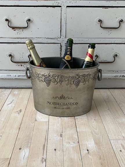 Gammel fransk champagne bowle, Piper Heidsieck, fransk vintage, Stor og super fed gammel fransk champagne køler / champagnebowle fra det hæderkronede champagnehus Piper Heidsieck. Champagnekøleren fremstår i metal i et skønt design, der er sjældent set og bringer smilet frem.