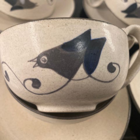 Koppen måler 11,0 cm. i diameter og 4,2 cm. i højden uden hanken.