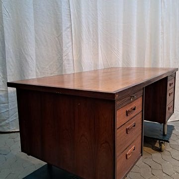 Skrivebord i fineret palisander og aluminium, fra 1970erne.