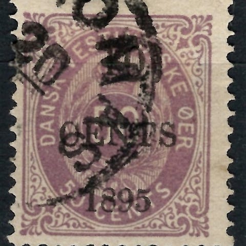DVI, AFA 17, Våbentypen år 1900, farvefrisk 5 cents blå, flot takning og centrering. Mærket er med fuld gummi, men det synes som om, der er et minimalt hængselspor.
