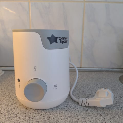 Vandvarmer til modermælkserstatning (MME). Maskinen leverer varmt vand i den rette temperatur på et øjeblik, så flasken kan gøres klar lynhurtigt med en sulten baby på armen.