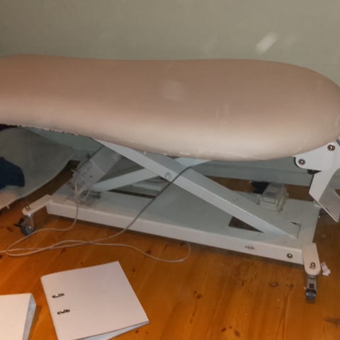 Elektrisk kvalitets massagebriks fra Earthlite, let brugt og i god stand. Der medfølger nakkestøtte med hul, armstøtte, 3 x puder og varmetæppe (underlag). Dårlige billeder grundet byggerod - kan ses/hentes på Islands brygge, 2 sal, efter aftale.