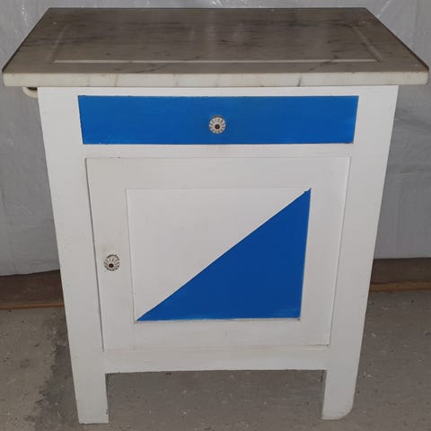 Antik servanteskab lavet træ med en marmorplade. Skabet har en rustik finish og er velegnet til brug i badeværelset eller som dekorativt møbel i andre rum. Marmorpladen giver en elegant kontrast til træets varme toner. Perfekt til opbevaring og som et stilfuldt element i hjemmet. Kan leveres i områder fra Holstebro til Århus( tæt på motorvejen)