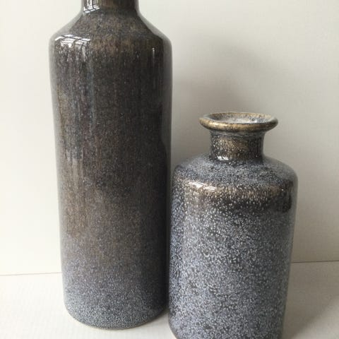 Keramik, Vaser, Et sæt med to søde små vaser. Sorte og hvide striber.