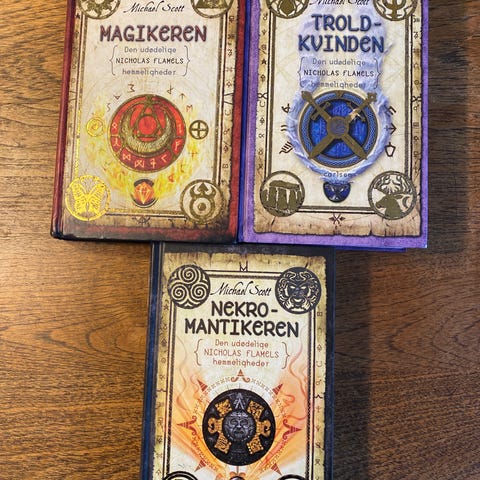 Den udødelige Nicholas Flamels hemmeligheder, Michael Scott, genre: fantasy, Flot stand. Alkymisten. Magikeren. Sælges samlet.