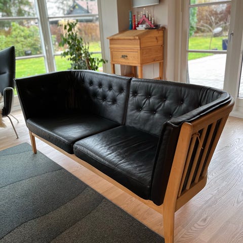 Anden arkitekt, Maria Kirsebær/Læder, 3 personers sofa, Super flot Dansk design Stouby 3 personers sofa model Maria i massiv kirsebærtræ med semi anelin huder farve Cognac.
