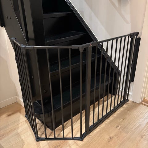 BabyDan Copenhagen børnegitter (eller hundegitter) i hvid metal. Designet til at sikre døråbninger og trapper, passer til åbninger fra 74 til 86 cm. Nem montering uden brug af værktøj. Ideelt til at holde børn (eller hunde) sikre i hjemmet.