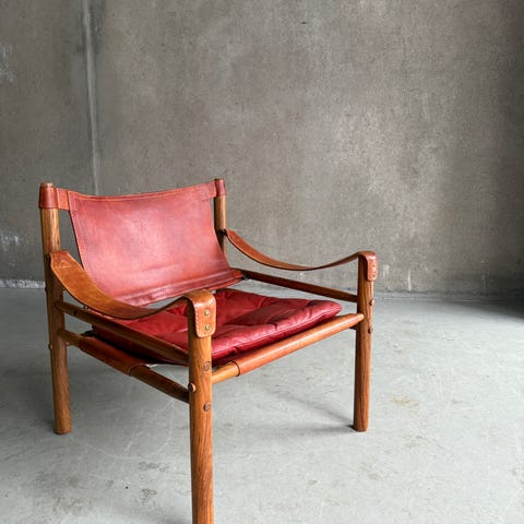 Falcon stol i stål stel. Brunt læder.