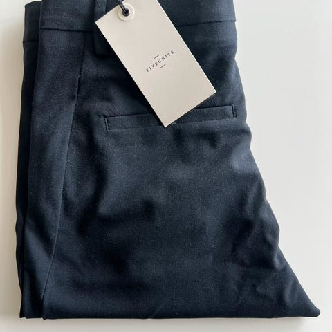 Nye og ubrugte superflotte damebukser fra FIVEUNITS, str. 26, Navyblå, lommer for og bag, mønstret skøn stof. Bør ses og prøves. Helt uden fejl og mangler. Nypris 800, men sælges for kun 350. Forsendelse 75 kr. ekstra.