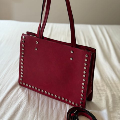 Meget lidt brugt skind taske, foret med ruskind. Indvendigt en lynlås lomme og en åben lomme.