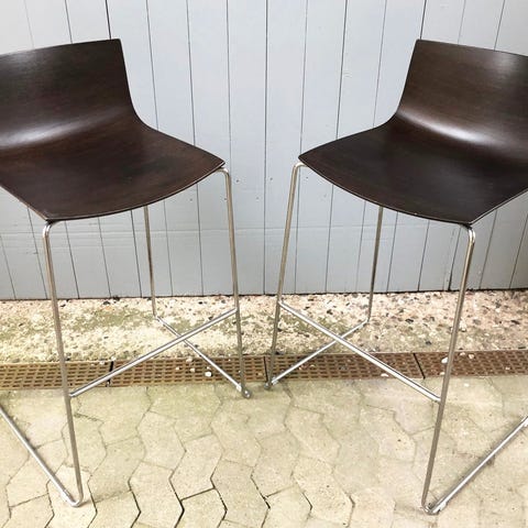 Tre flotte barstole fra italienske Arper. Designet af Livore Altherr og Molina i 2004. En både smuk og praktisk stol med skal i formstøbt plast og stel af stål. Skallen er hvid på forsiden og farvet på bagsiden. Jeg har to røde og en sort. Siddehøjden er 75 cm. De kan stables. Prisen er pr. stk. Du kan købe alle tre for 750 kr. Flot stand. JULETILBUD