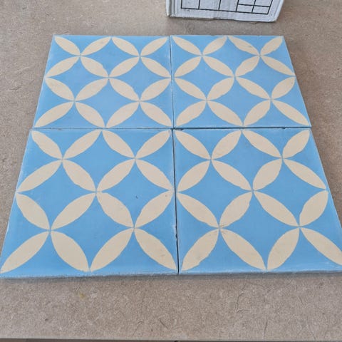 Fineste håndlavede marokkanske cementfliser fra Villa fliser. Har til ca 50 m2. (2 paller)