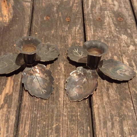 Sølvplet lysestage, Hans Jensen, 2 flotte sølvplet lysestager fra Hans Jensen sølvsmedje. Til 2 almindelige stearin lys.