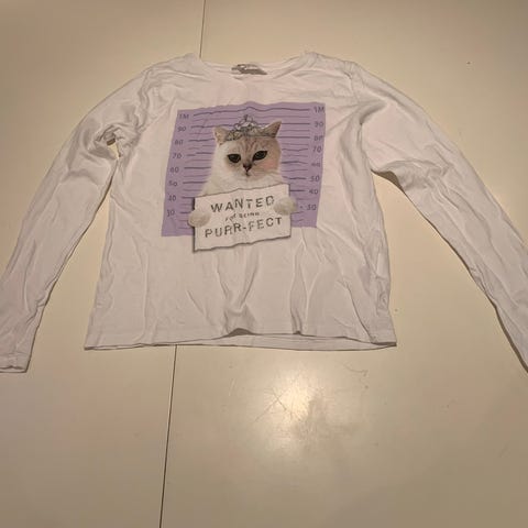 Sød lyserød bluse med kat. Ingen brugsspor. Størrelsen hedder 110/116.