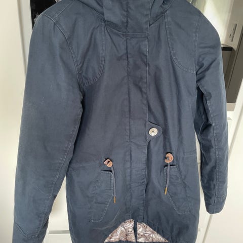 Jakke, str. 36, Elvine, Mørkeblå, Bomuld, God men brugt, lang model