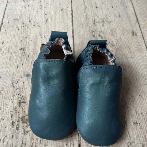 Melton sutsko, brugt meget lidt og fremstår derfor som nye. Str. 22-23, i mørkeblå.