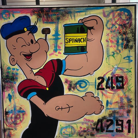 Sjovt og unikt kunstværk, håndmalet med akrylmaling.