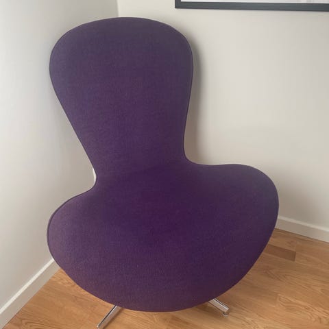 Lilla lænestol rigtig fed farve og man får en kanon sidde komfort der er lidt brugsspor