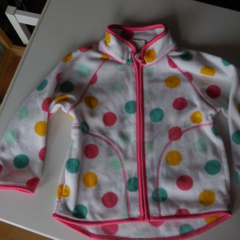 Fleece, jakke/trøje, H & M, str. 134, lyserød m hjerter på. Fra røgfrit hjem. Kan sendes med gls. Køber betaler porto. Skriv på annoncen. (Caro)(B5)(25)
