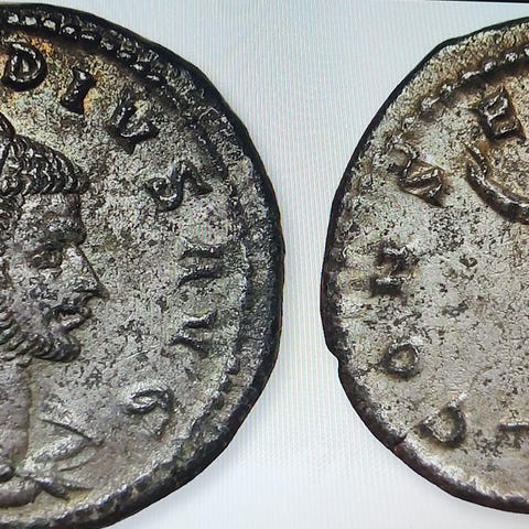 Rev: IOVI CONSERVATORI / X / II Γ / SMHA, Jupiter står til venstre og holder kronen på sejren på globus og scepter; ved fod til venstre, ørn stående til venstre, hoved til højre, holder krans i næbbet; til højre, bundet til fange siddende højre, hovedet til venstre.